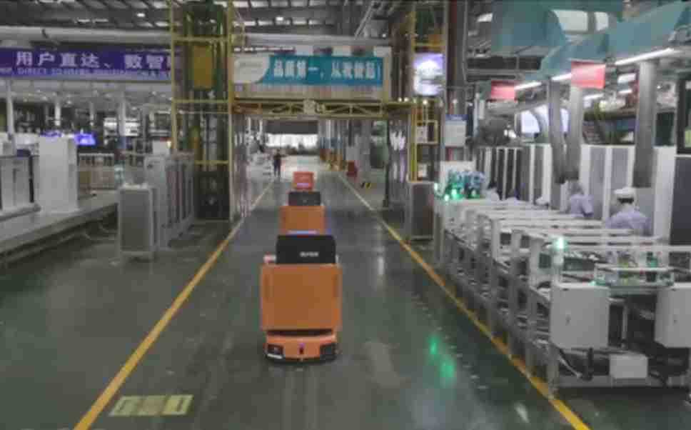 为车载冰箱物流配送打造的智能解决方案,,,,包含产中物流通过潜伏举升AMR搬运至线边,,,,产后成品物流智能仓储,,,流程包含产中物流智能齐套入库,,,线边安灯叫料AMR智能配送至线边,,,,成品入库、、、出库,,,,通过无人堆高车机器人,,智能仓储管理替代人工作业管理,,,实现更高存储、、、更高效率、、、、更具柔性化的解决方案。。。